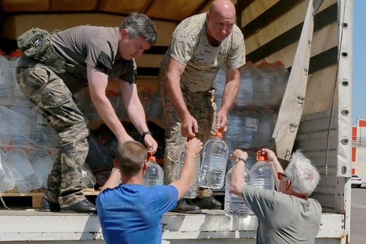 В числе грузов – питьевая бутилированная вода, мясные и рыбные консервы, крупы.