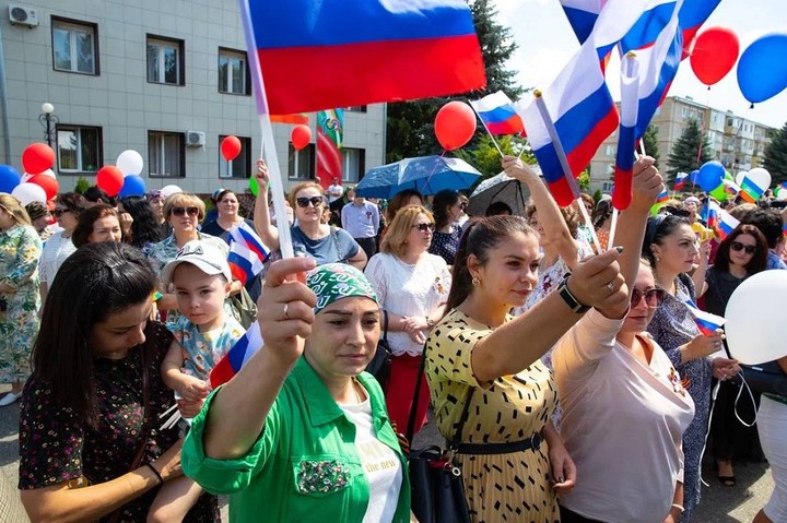 На центральной площади Усть-Джегуты в Карачаево-Черкессии состоялся митинг-концерт в поддержку президента России Владимира Путина и российских военнослужащих - участников специальной военной операции на Донбассе и территории Украины.