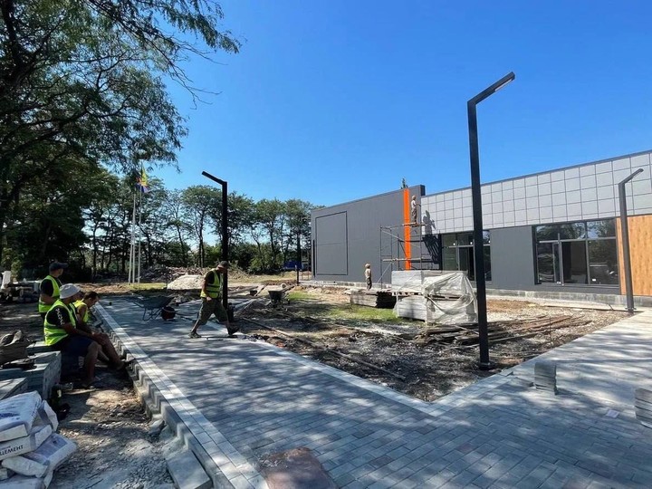 В настоящее время специалисты занялись внутренней отделкой здания, а также благоустройством прилегающей к нему территории.