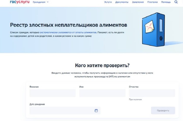 На Госуслугах появился реестр злостных неплательщиков алиментов.