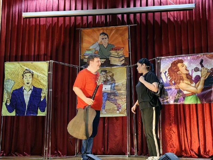 Камерный музыкальный театр Республики Адыгея имени А. А. Ханаху представил на сцене Дондуковского сельскохозяйственного техникума музыкальный комикс «Остановиться вовремя» по пьесе Виктора Маркова.