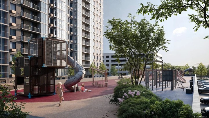 При этом эстетика не противоречит функциональности: внутри квартала появится собственная поликлиника, храм, физкультурно-оздоровительный комплекс, многоуровневый паркинг. Во дворах оборудуют спортивные и детские площадки.