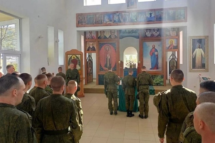 Богослужение прошло в храме в честь иконы Божией Матери «Спорительница хлебов», где собрались защитники Отечества.