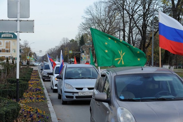 В Майкопе автопробегом поддержали Вооружённые силы РФ