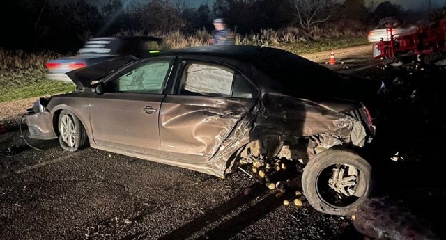 Машина врезалась в трактор, отчего ее отбросило на встречку