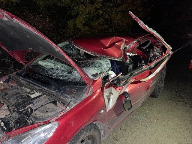 Трактор столкнулся с двигавшемся во встречном направлении автомобилем