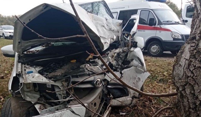 В Краснодарском крае легковушка съехала с дороги и врезалась в дерево