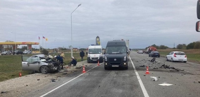 На Кубани произошло лобовое столкновение легкового автомобиля с грузовиком