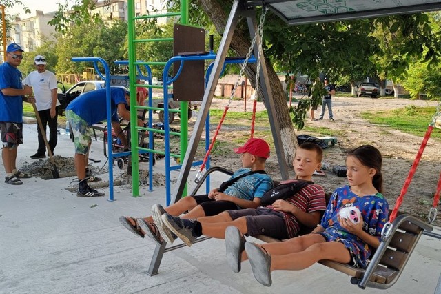 В Геническе строители из Адыгеи приступили к монтажу детских площадок
