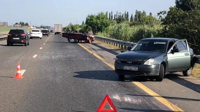 В Адыгее на трассе М-4 «Дон» произошло ДТП с опрокидыванием автомобиля